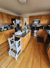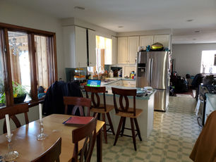 The clients rarely used the formal dining room, and the kitchen layout did not suit their needs. By removing the separating wall, we optimized the space for modern living. We cleverly relocated heating ducts from the removed wall, ensuring both comfort and style. A shorter window in the former dining room was installed to accommodate a beautifully positioned sink.